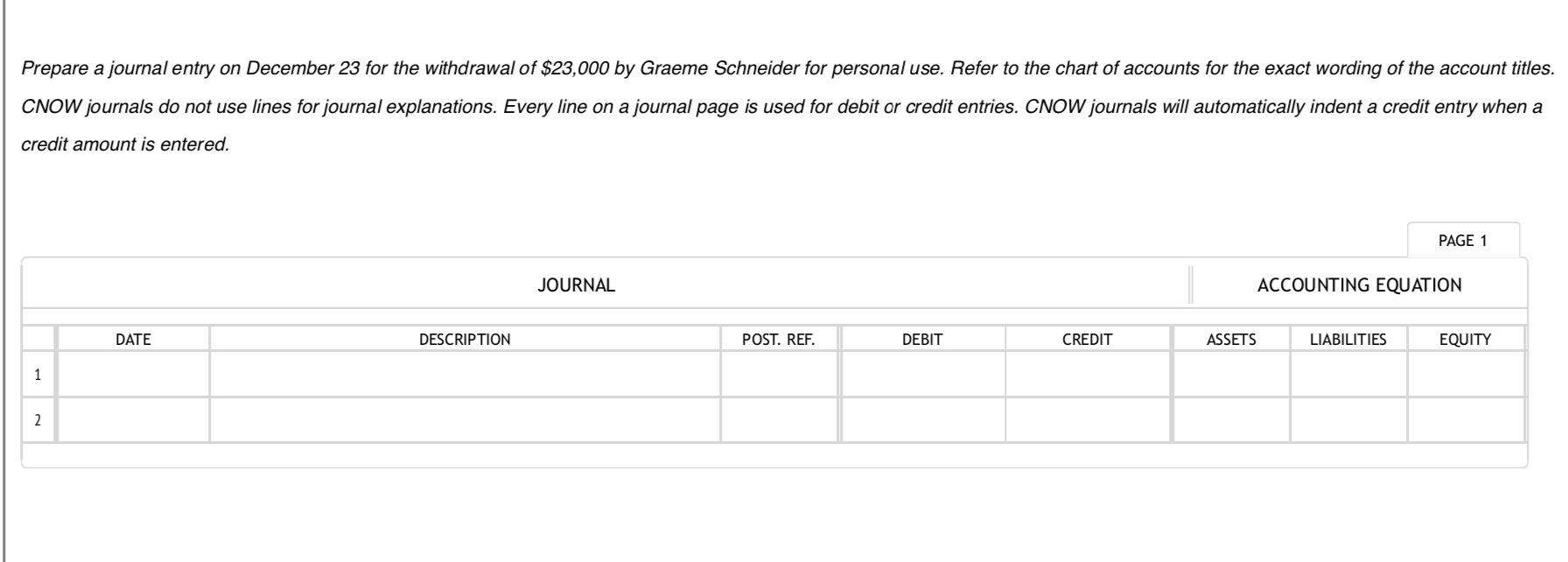 Solved Prepare a journal entry on December 23 for the Journal Entry For Withdrawal Of Goods For Personal Use The withdrawal of cash by the owner for personal use is recorded on a temporary. drawings of stock implies stock or goods taken away by the proprietor or partner for personal purposes. It is the owner’s withdrawal as they decide to take the. journal entry for goods withdrawn for personal use. The accounting records will show the following.. Journal Entry For Withdrawal Of Goods For Personal Use.